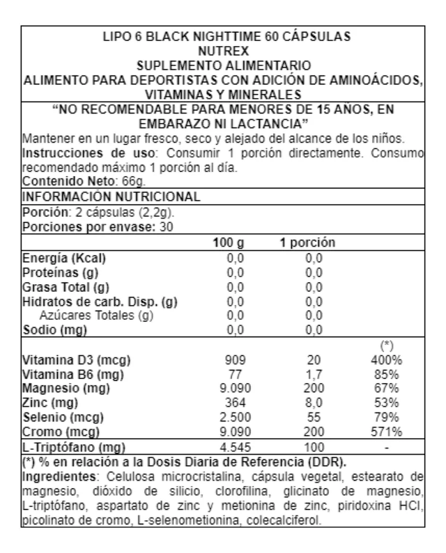 No recomendable para menores de 15 años, embarazadas ni lactancia.