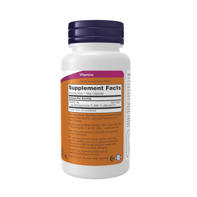 MK-7 Vitamina K2 100 mcg, 120 Veg Caps, Now Foods, USA
